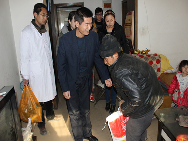 活動在社區(qū)辦提供的四戶家庭情況較為困難的業(yè)主家中進(jìn)行。主要是對患病業(yè)主進(jìn)行義務(wù)就診,講解冬季預(yù)防疾病的常識,發(fā)放慰問物品。