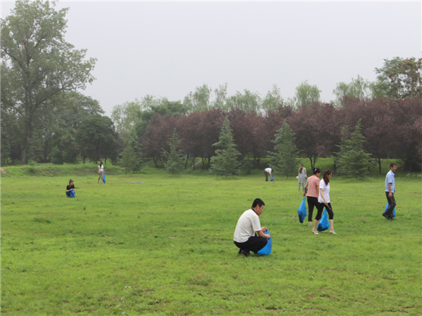 一大早,趙總親自帶隊,魏總協(xié)助配合,公司工會、團支部積極協(xié)調(diào),合理將河南街、安谷苑、統(tǒng)一大樓、陜西中醫(yī)學院項目部以及機關人員分配于東西兩側(cè)草坪。在公司領導親力親為的感召下,全體員工干勁十足,經(jīng)過近兩個小時的清理,還原了景區(qū)綠化的整潔環(huán)境。